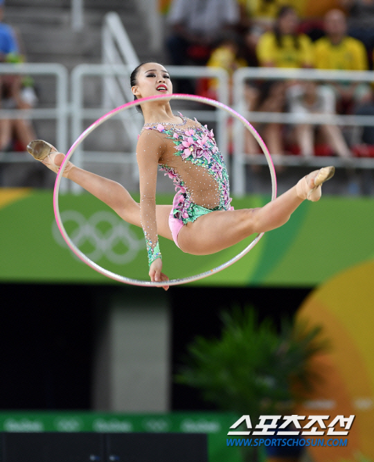 손연재는 전체 10명 중 8번째로 첫 번째 세션인 후프 연기를 준비했다. 변수가 발생했다. 경기 직전 멜리티나 스타니우타(벨라루스)가 점수에 이의신청을 제기한 것. 손연재는 예정 시간보다 늦게 무대에 올랐다.