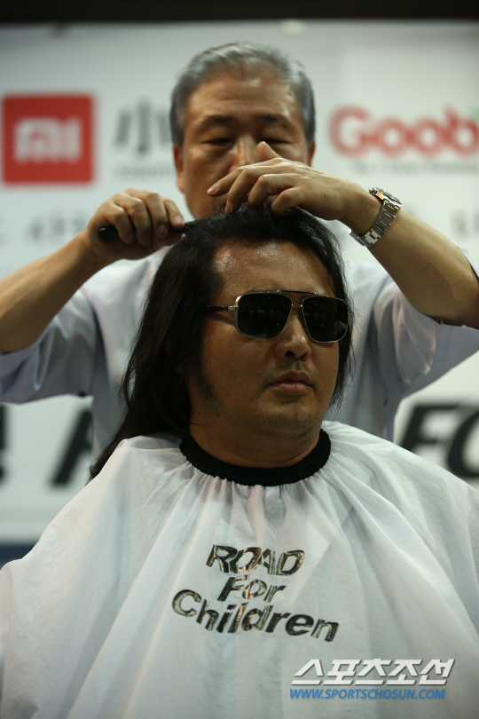 탤런트 김보성이 ROAD FC 데뷔를 앞두고 소아암 어린이들에게 모발 기증을 위한 삭발식을 가졌다.