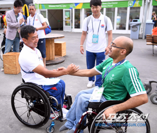 new HawkEyes({'type':'banner','responsive':'N','platform':'M','scriptCode':'954384','frameCode':'43','width':'320','height':'100','settings':{'cntsr':'4','mChk':'100'}}); [리우패럴림픽] 6일(한국시간) 브라질 리우데자네이루 패럴림픽 선수촌 플라자에서 육상 계주팀의 홍석만 선수가 IPC(국제패럴림픽위원회) 선수위원 선거운동을 하고 있다.