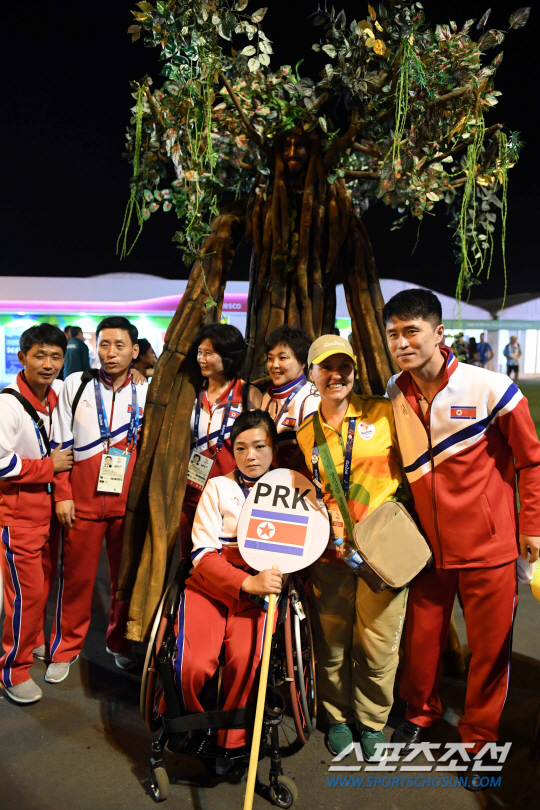 [리우패럴림픽] 7일(한국시간) 오전 브라질 리우데자네이루 패럴림픽 선수촌 플라자에서 북한 선수단의 입촌식이 열렸다.