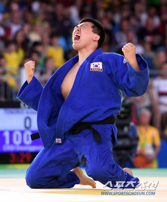 [리우패럴림픽] 11일(한국시간) 새벽 6시 브라질 리우데자네이루 올림픽파크에서 있은 남자 유도 ?100kg급 결승전에서 한국의 최광근이 브라질의 테노리오를 한판승으로 꺽고 포효하고 있다.
