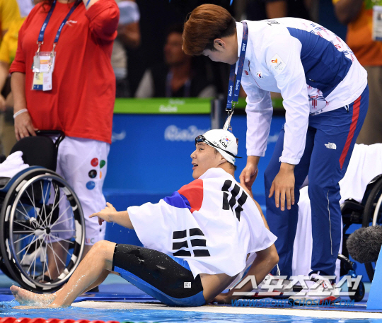 [리우포토] 조기성 '태극기와 함께 금메달 세리머니'
