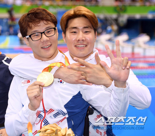 [리우포토] 조기성 '생활보조요원 권도현과 기쁨나눠~'