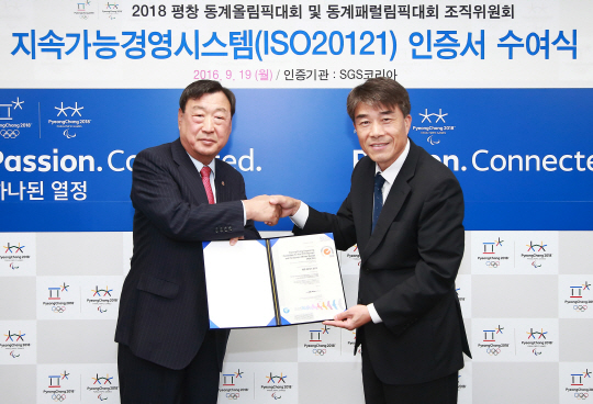 조직위원회는 19일 평창주사무소에서 이희범 위원장과 권이성 한국SGS 대표 등이 참석한 가운데 평창올림픽 준비 전반의 지속가능성에 대해 국제표준인 'ISO20121(이벤트 지속가능경영시스템)' 인증서 수여식을 개최했다. 이로써 평창 동계올림픽대회는 ISO20121 인증을 획득한 사상 첫 번째 동계올림픽이자, 하계올림픽을 포함하면 런던과 리우올림픽에 이어 세 번째 인증을 받은 올림픽이 됐다.