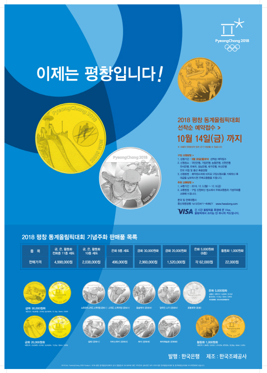 한편, 14일까지 진행되는 기념주화 예약은 10개의 지정 금융기관(KB국민은행, IBK기업은행, NH농협은행, SH수협은행, 신한은행, 우리은행, 우체국, BNK경남은행, DGB대구은행, BNK부산은행) 전국지점과 판매대행사인 풍산화동양행을 통해 이뤄지며, 예약 접수된 기념주화는 12월 5일부터 9일까지 닷새 동안 교부될 예정이다.