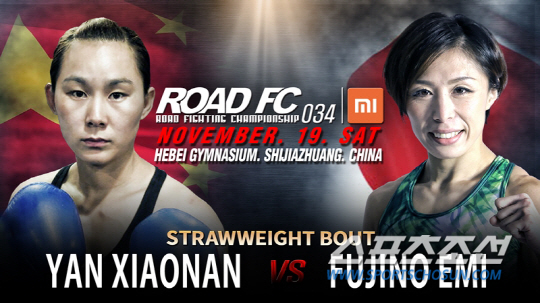 ROAD FC에서 무패인 얜샤오난을 잡기 위해 후지노 에미가 나선다. 후지노 에미는 30전에 가까운 경험을 쌓은 베테랑. 그라운드 기술이 뛰어나서 작은 틈만 보여도 서브미션 기술로 상대를 제압한다. XIAOMI ROAD FC 031에서 홍윤하가 패기로 맞섰지만, 노련미의 차이를 극복하지 못하고 패한 바 있다.