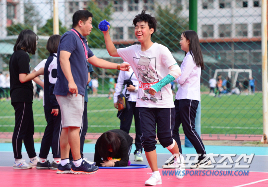 하얀색 체육복을 입은 (김)지은이는 일찌감치 운동장에 나와 이곳저곳을 뛰어다니며 즐거워했다. 자전거를 타다 다친 왼팔에 깁스를 하고도 전혀 개의치 않는 모습이었다. 지은이는 "어렸을 때부터 운동하는 것을 좋아했어요. 체육시간이 제일 좋아요"라며 "다친 팔만 조심하면 체육수업에 참여하는 것에는 문제가 없죠"라고 환하게 웃었다.