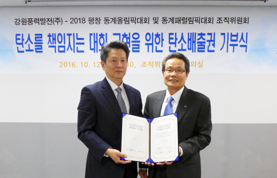 평창 동계올림픽을 통해 발생하는 온실가스 제로화를 위해 개최도시 기업의 첫 참여가 이뤄졌다.