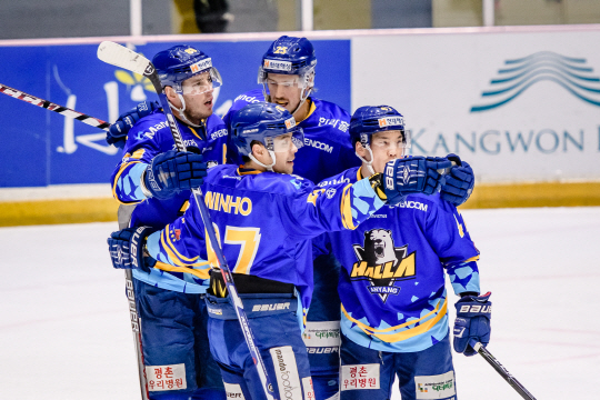 안양 한라가 23일 고양에서 열린 2016~2017 아시아리그 아이스하키 고양 집결전에서 닛코 아이스벅스에 3대1 완승을 챙겼다.