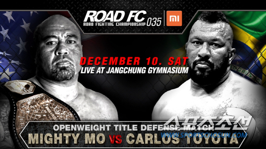 'ROAD FC 무제한급 챔피언' 마이티 모(46·MILLENNIA MMA)의 1차 방어전 상대가 확정됐다. 6년 만에 복귀한 최홍만을 KO로 꺾은 카를로스 토요타(45·HARD COMBAT)가 도전자로 12월 10일 서울 장충체육관에서 열리는 XIAOMI ROAD FC 035에서 대결한다.