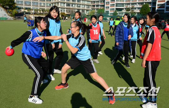 낯선 풍경이다. 몇 년 전만해도 엘리트 선수와 일반 학생이 체육시간에 함께 호흡하는 일은 보기 힘들었다. 그러나 송곡여중 학생들에게는 일상이다.