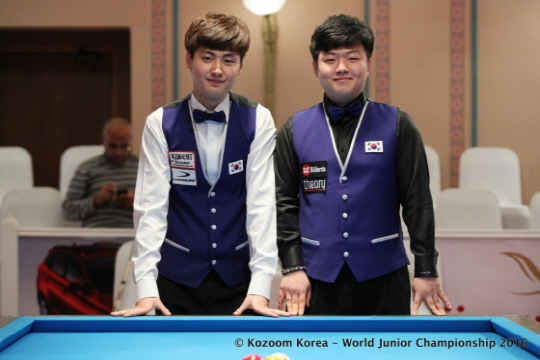 '당구신동' 조명우(매탄고)가 11일(이하 한국시간) 이집트 후루가다에서 열린 2016년 세계주니어 3쿠션 선수권 결승에서 우리나라의 신정주를 상대로 35대29 승리, 우승컵에 입을 맞췄다.