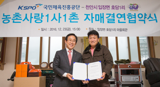 국민체육진흥공단(이사장 이창섭)이 지난 23일 충남 천안 호당1리 마을과 1사1촌 자매결연을 맺었다.