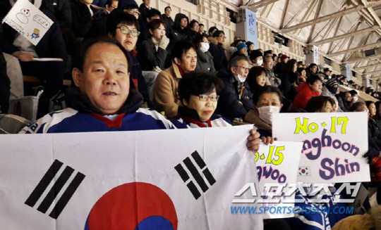 이날 경기장에는 선수 가족과 태극낭자 뿐만 아니라 대한체육회 및 대한아이스하키 관계자 등이 대거 자리해 응원에 나섰다. '대~한민국'을 외치는 목소리에 선수들도 힘을 냈다.