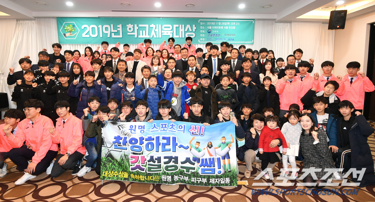 '2019 학교체육대상' 시상식이 28일 오후 서울 양재동 더케이호텔에서 열렸다. 수상자들이 학생, 가족, 시상자들과 함께 기념촬영을 하고 있다.