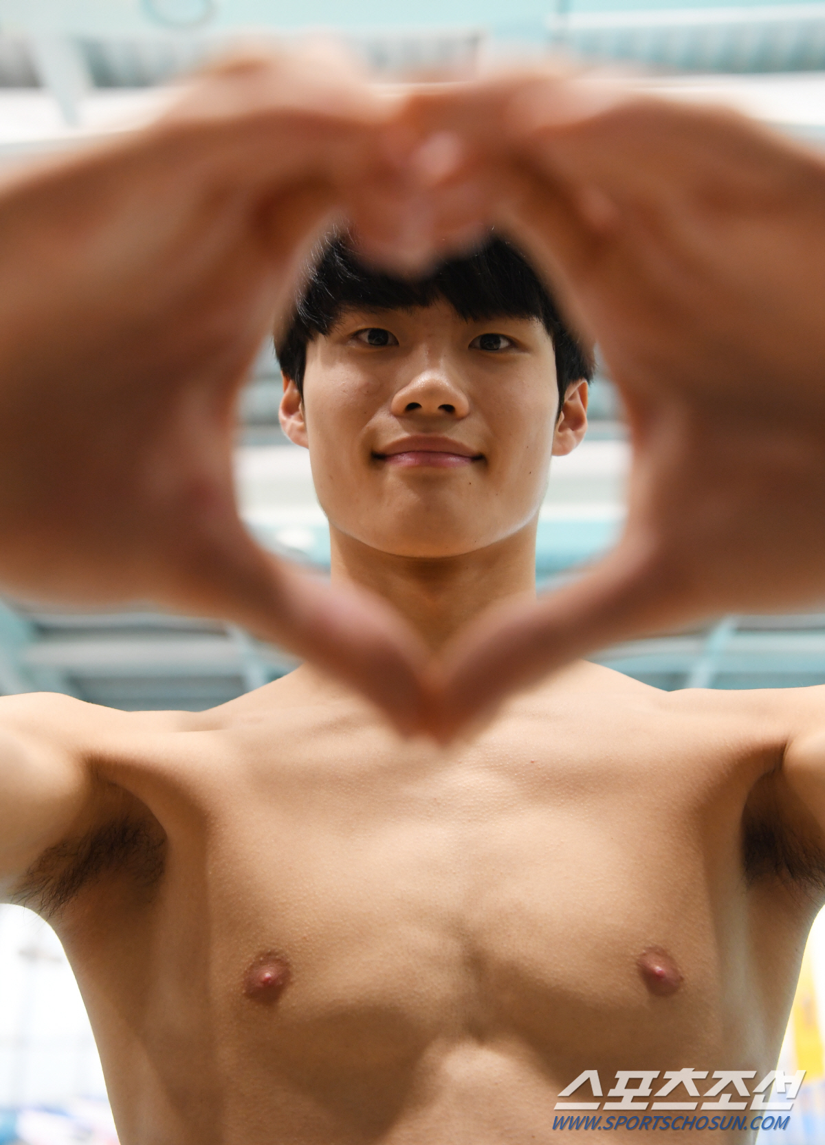 24일 서울 송파구 서울체고 실내수영장에서 만난 '17세 수영소년' 황선우(서울체고)가 선선한 눈매로 거침없는 도전을 이야기했다. 불과 며칠 전 김천에서 열린 국가대표선발전에서 자유형 100m에서 48초25, 박태환을 뛰어넘는 한국신기록을 쓰고, 자유형 200m에서 1분45초92의 세계주니어신기록을 쓴 '괴물'같은 선수는 뜨거운 스포트라이트에도 할 일을 했을 뿐이라는 듯 담담했다. 1m86의 키에 조막만한 얼굴, 양팔 벌린 길이 1m93… 다빈치의 황금비율, 비트루비안맨을 떠올리게 하는 소년의 몸은 날렵했다. 단단한 식스팩과 단련된 잔근육에서 그간의 훈련양이 짐작됐다.