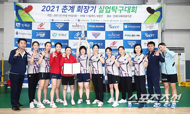 김형석 감독이 이끄는 포스코에너지는 대회 마지막 날인 11일 오후 강원도 인제군 다목적경기장에서 펼쳐진 춘계 회장기 실업탁구 기업부 여자 단체전 결승에서 '난적' 대한항공을 3대1로 꺾고 우승컵을 들어올렸다. 코로나19로 인해 연기된 춘계 실업 대회에서 단단하게 다진 원팀의 내공으로 단식, 복식에 이어 단체전까지 우승하며 전관왕에 올랐다.