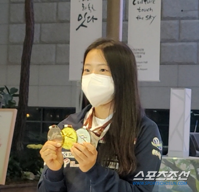 신유빈은 6일 카타르 도하 아시아탁구선수권을 마치고 인천공항을 통해 귀국했다. 도쿄올림픽 직후 열린 아시아선수권 무대에서 여자단체전 은메달을 따냈고, 여자단식 4강에 한국선수로는 유일하게 진출해 결승까지 올라 53년만의 은메달을 목에 걸었다. 대회 마지막날 '베테랑 톱랭커' 전지희(29·포스코에너지)와 함께 나선 여자복식에서 홍콩 두호이켐-리호칭조를 3대1로 가볍게 꺾고 21년만의 금메달을 목에 걸었다. 금, 은메달 3개를 걸고 돌아온 신유빈은 피곤한 기색이 역력했지만 행복한 미소만은 감추지 않았다.