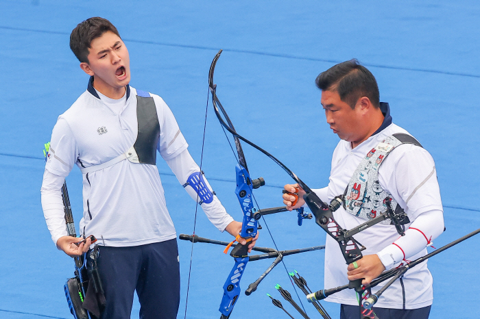 한편, 이날 경기장엔 정의선 대한양궁협회장이 찾아 선수들을 격려했다. 오진혁은 정 회장에게 금메달을 걸어줬다. 항저우(중국)=김가을 기자 epi17@sportschosun.com
