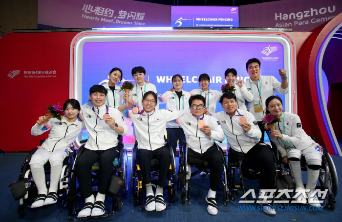 여자 휠체어펜싱 대표팀은 24일 중국 항저우 전자과학기술대학 체육관에서 열린 대회 플뢰레 단체전 동메달 결정전에서 태국에 20대45로 졌다. 권효경과 백경혜(23·한전KDN), 조은혜(38·SK에코플랜트), 조예진(20·코오롱FNC)이 나섰다.