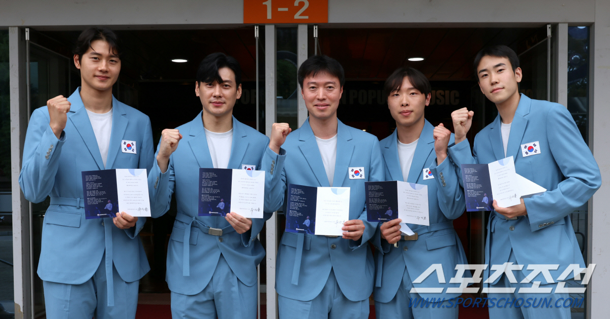결단식 현장에선 서로를 응원하는 태극전사들의 우정도 빛났다. 수원 천천중 동기로 14년 우정을 이어온 '인어공주' 김서영(경북체육회)과 '역도스타' 김수현(부산시체육회)은 다정하게 사진을 찍으며 행복한 추억을 남겼다. '체조요정' 여서정(제천시청)과 '탁구요정' 신유빈(대한항공)도 함께 하는 두 번째 올림픽을 자축하고 응원했다. 수원 출신인 여서정과 신유빈은 휴가 때면 함께 맛집 투어를 하며 마음을 나누고 힘든 선수촌 생활속에 서로를 의지하는 자매같은 사이. 신유빈은 "즐기자!" 여서정은 "후회없이!"를 모토로 신유빈은 올림픽 첫 메달, 여서정은 도쿄 동메달에 이은 연속 메달에 도전한다. '근대 5종 에이스' 전웅태는 펜싱장에서 인연을 맺은 '베테랑' 구본길을 보고 반색했다. 서로 "부상 없이! 건강하게!"를 외치며 금빛 기운을 나눴다.