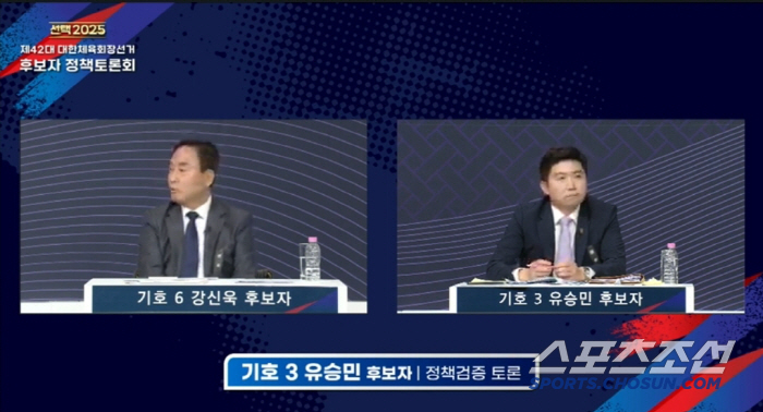 유승민 후보는 "2016년 2000억에서 5000억까지 예산이 늘었다는데 현장은 그대로다. 체육지도자들은 최저시급 이하고 아비규환이다. 이제부터 하면 된다는데 왜 이제까지는 못했나?"라고 압박의 수위를 높였다. 이 후보는 "최선을 다하고 있다. 정부의 간섭 때문이다. 규제를 풀어야 한다. 유 후보가 말하는 NFT, 스폰서십도 제재 때문에 할 수가 없다. 지방 체육회으로 직접 교부하는 예산도 결국 다시 돌아올 것이다. 2016년에도 사업하다가 못했다. 정산이 안된다. 시도체육회도 거부하고 있다"고 주장했다. 이어 강신욱 후보는 "질문하지 않겠다"며 이 후보에 대한 질의를 '패스'해 눈길을 끌었다.