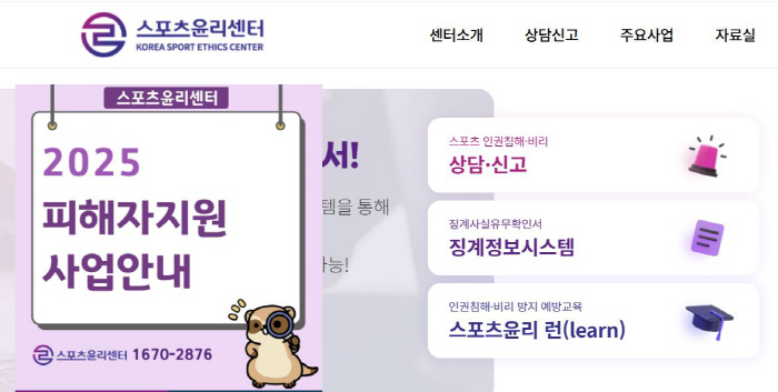 [스포츠조선 전영지 기자]문화체육관광부 산하 스포츠윤리센터(이사장 박지영)가 최근 체육계에 충격과 공포를 안긴 태권도 코치의 여고생 선수 폭행 혐의 사건과 관련해 '스포츠 인권침해 사안에 대해 더욱 적극적으로 대응하고 피해자의 목소리를 대변하겠다'는 의지를 밝혔다.