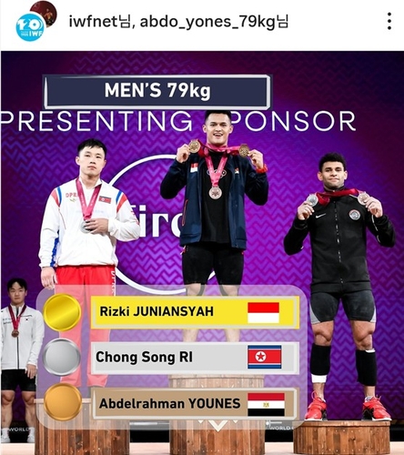 북한의 리청성은 인상 163㎏, 용상 197㎏, 합계 360㎏으로 2위에 올랐다.