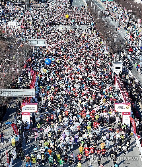 수많은 일반인 참가자가 땀 흘리는 국내 한 마라톤대회 현장.