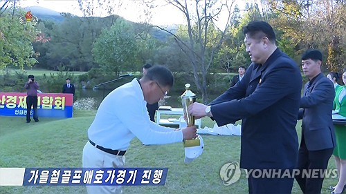 중앙TV는 '가을철 골프 애호가 경기'가 평양골프장에서 진행됐다고 이날 보도했는데, 방영된 경기 영상을 보면 골프채를 쥔 한 참가자가 나이키 로고가 선명한 신발을 신고 있다.