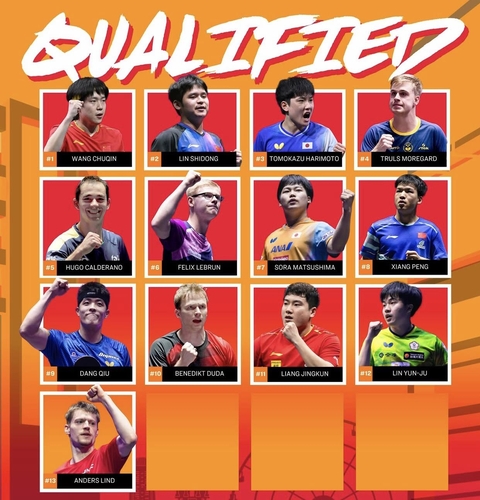 남자 단식에는 세계랭킹 1위 왕추친을 비롯해 2위 린스둥(이상 중국), 남미의 강호 우고 칼데라노(3위), 일본의 간판 하리모토 도모카즈(4위), 프랑스의 '탁구 천재' 펠릭스 르브렁(7위) 등 13명의 출전이 확정됐다.