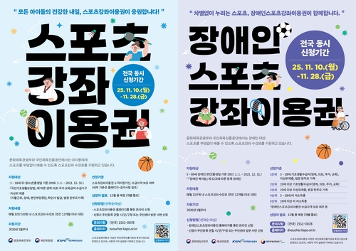 한편, 스포츠강좌 이용권은 다른 체육·건강지원사업과 중복해 혜택을 받을 수 없다.