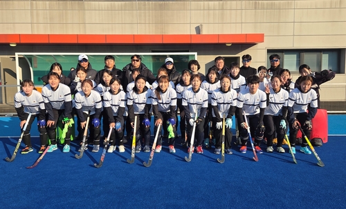 (서울=연합뉴스) 김동찬 기자 = 한국대학·실업하키연맹(회장 김재홍)은 19일 충북 진천 국가대표 선수촌에서 훈련 중인 남녀 주니어(21세 이하) 국가대표 선수단에 격려금을 전달했다.