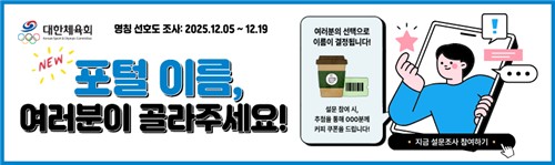 체육회는 조사 참여자 중 600명을 추첨해 커피 쿠폰 또는 네이버페이를 경품으로 제공할 예정이다.