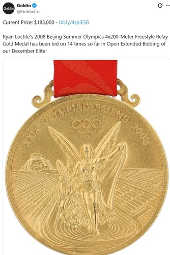 7일(한국시간) 경매 업체 골딘 등에 따르면 록티가 내놓은 남자 계영 올림픽 금메달 3개는 총 38만5천520달러(약 5억6천만원)에 낙찰됐다.
