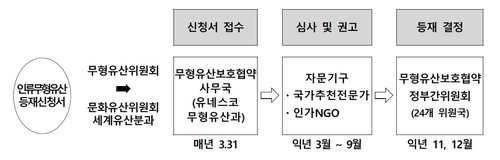 국가유산청 관계자는 "올해 3월 중 무형유산보호협약 정부간 위원회(이하 '무형유산위원회') 사무국에 등재 신청서를 제출할 것"이라고 말했다.