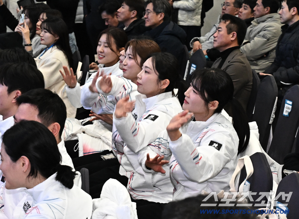 22일 잠실 올림픽파크텔에서 '2026밀라노코르티나 동계올림픽' 출전 대한민국 선수단 결단식이 열렸다. 축하 무대를 즐기는 여자 컬림 대표 선수들. 잠실=송정헌 기자songs@sportschosun.com