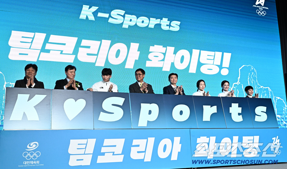 22일 잠실 올림픽파크텔에서 '2026밀라노코르티나 동계올림픽' 출전 대한민국 선수단 결단식이 열렸다. 대표팀 선전을 기원하는 축하 세리머니. 잠실=송정헌 기자songs@sportschosun.com
