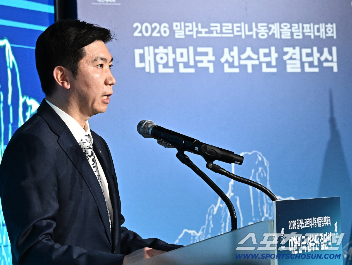 22일 잠실 올림픽파크텔에서 '2026밀라노코르티나 동계올림픽' 출전 대한민국 선수단 결단식이 열렸다. 인사말하는 대한체육회 유승민 회장. 잠실=송정헌 기자songs@sportschosun.com