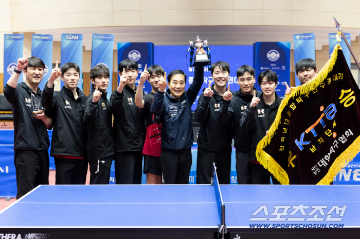 [제천=스포츠조선 전영지 기자]'남자탁구 신흥 명가' 한국거래소가 정영식 감독의 세아를 꺾고 종합탁구선수권 첫 우승컵을 들어올렸다.