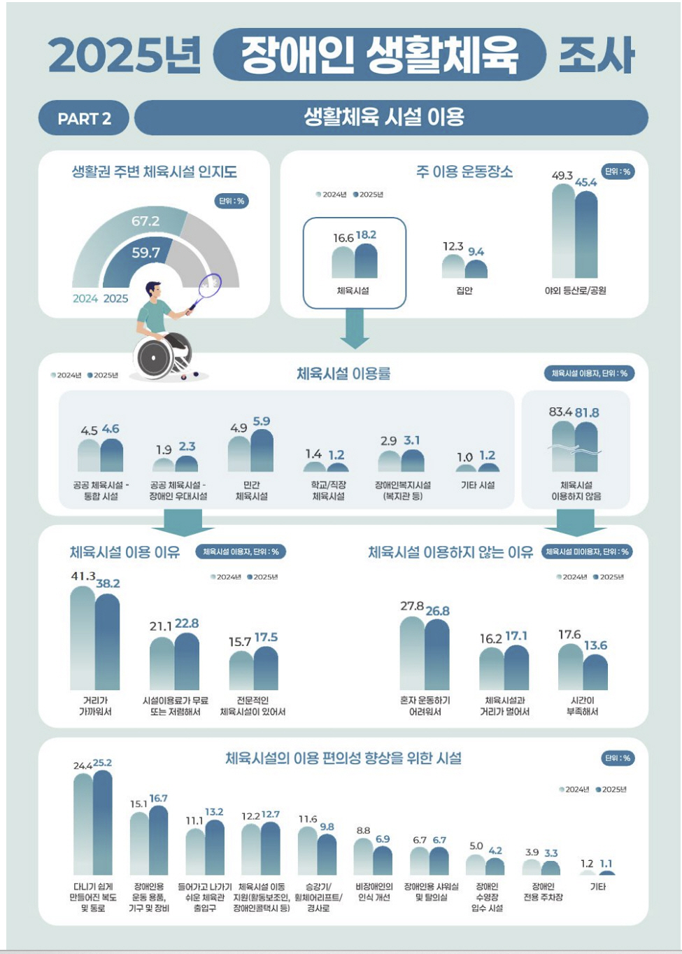 문화체육관광부(이하 문체부)와 대한장애인체육회는 28일 '2025년 장애인 생활체육조사' 결과를 발표했다.