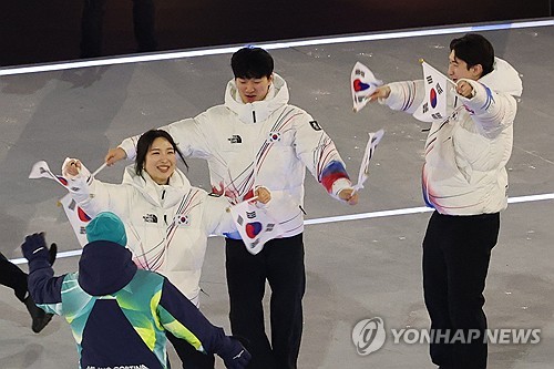 한국 선수단은 산시로 올림픽 스타디움에서 피겨스케이팅 차준환(서울시청), 스피드스케이팅 박지우(강원도청)가 공동 기수로 나서 22번째로 입장했다.