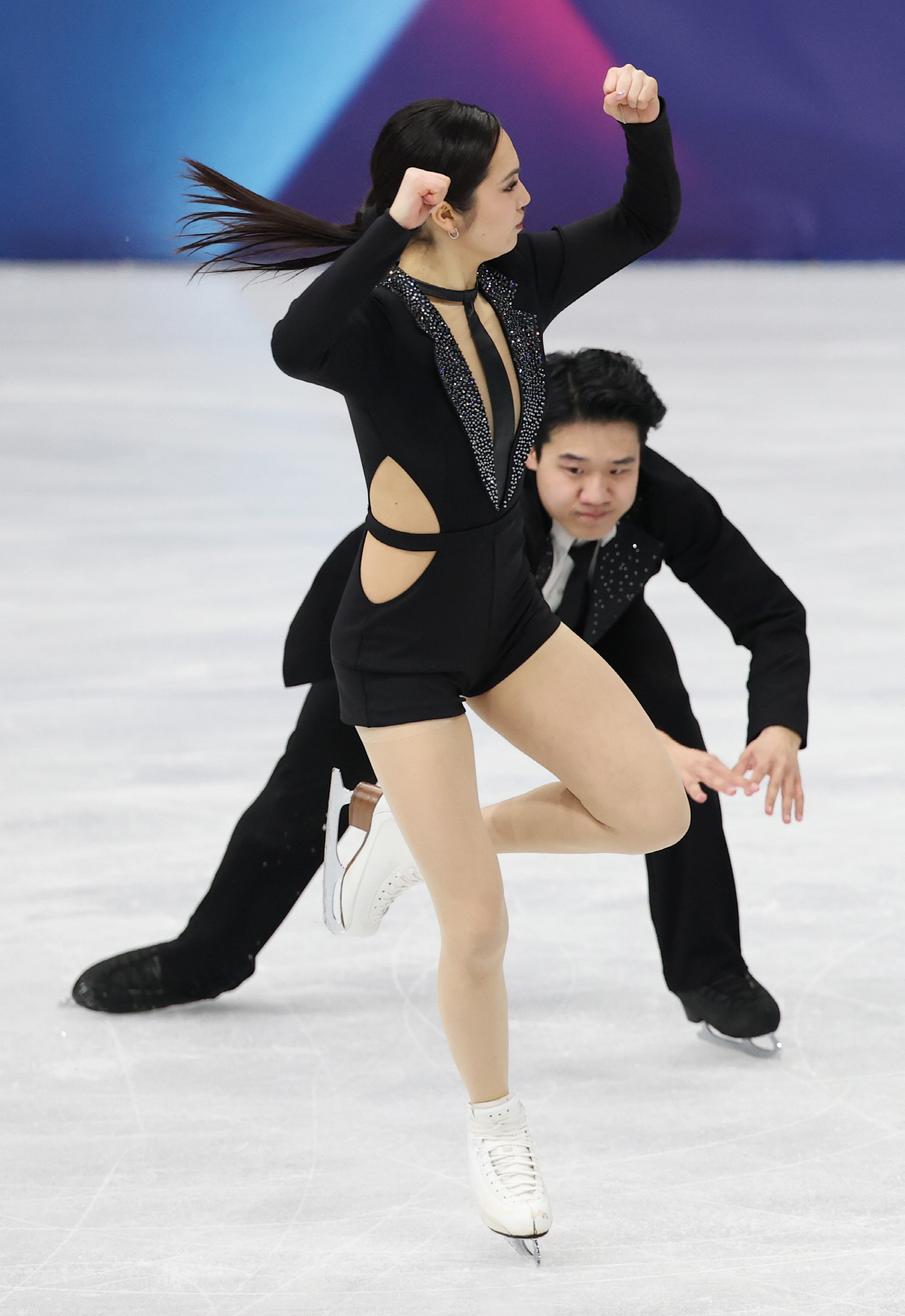 이날 12번째 순서로 은반에 오른 임해나-권예는 윌 스미스의 '맨 인 블랙'을 배경음악으로 연기를 시작했다.