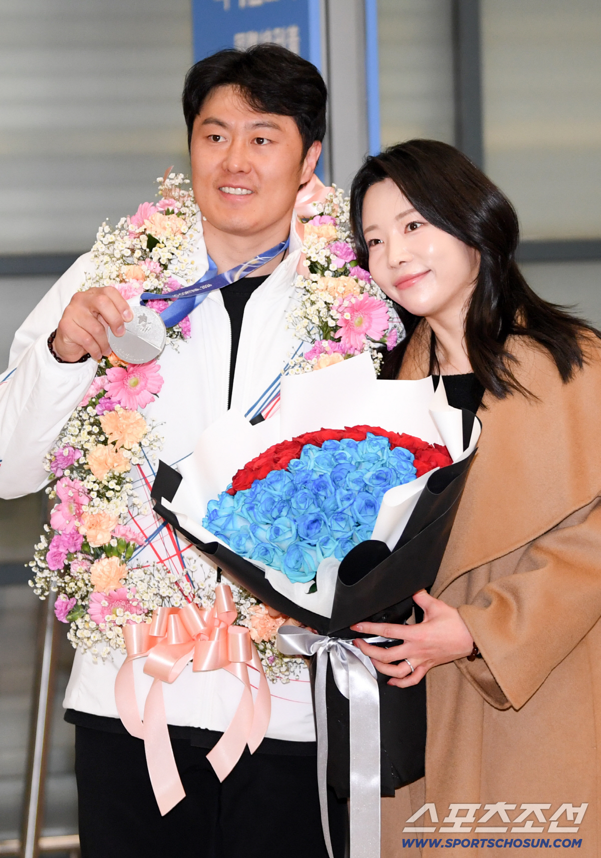 [인천공항=스포츠조선 박재만 기자] 막노동하며 버틴 8년을 버틴 37세 스노보더 김상겸이 아내와 목에 올림픽 은메달을 걸어줬다.