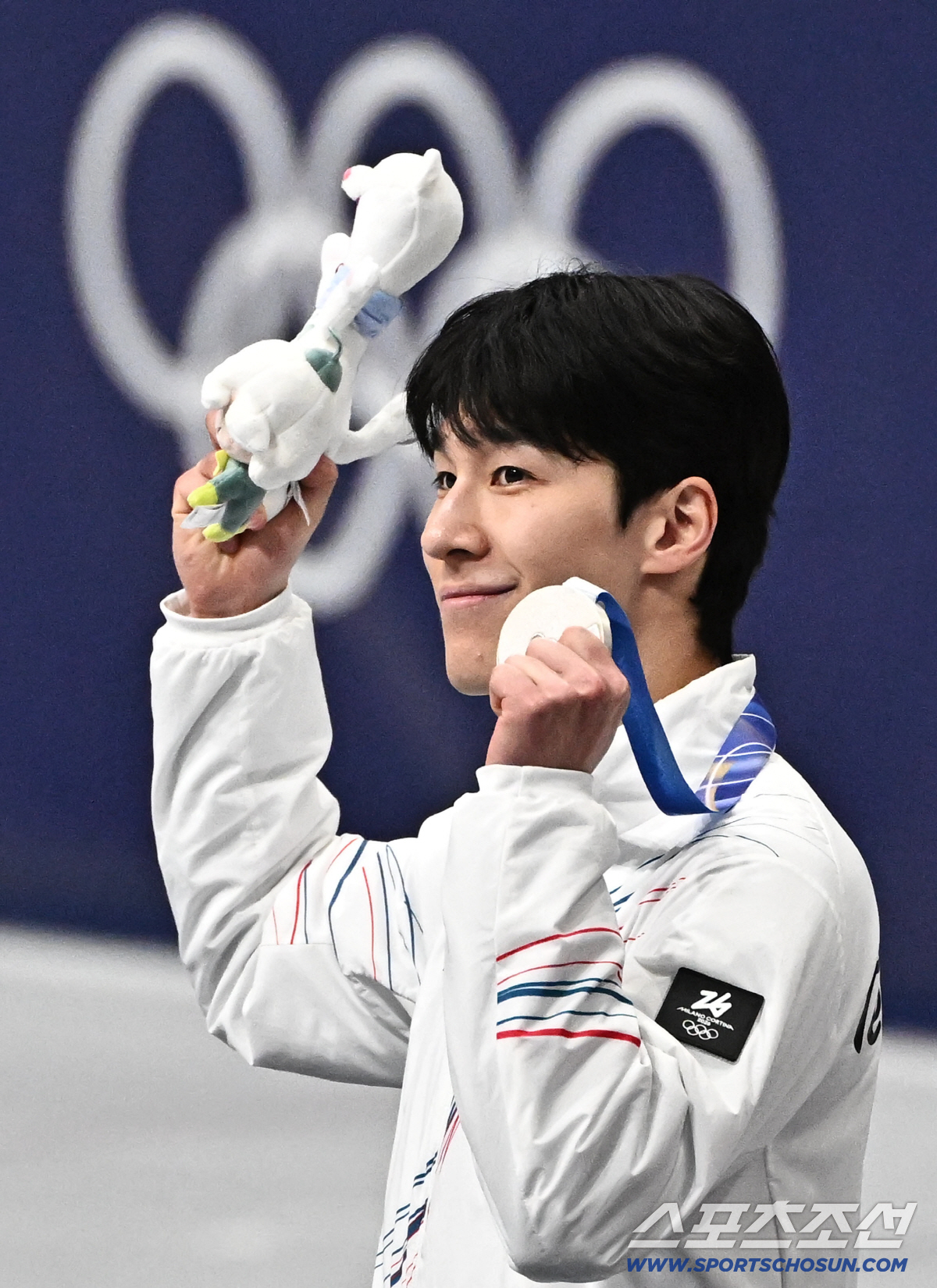 15일(한국시간) 이탈리아 밀라노 아이스스케이팅 아레나에서 열린 쇼트트랙 남자 1500m 결승전. 황대헌이 은메달을 차지했다. 은메달 수상하고 있는 황대헌. 밀라노(이탈리아)=송정헌 기자songs@sportschosun.com/2026.02.15/