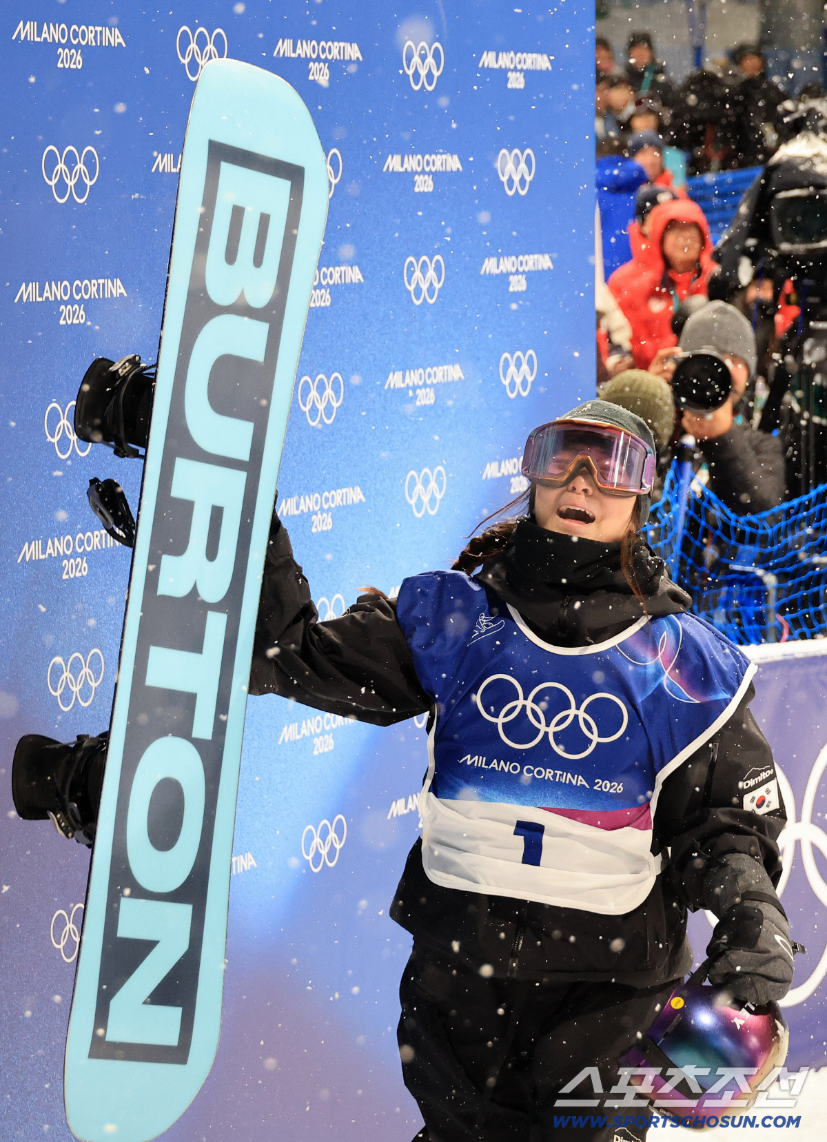 13일(한국시간) 이탈리아 리비뇨 스노파크에서 열린 스키 스노보드 여자 하프파이프 결선에서 최가온이 90.25점을 획득해 금메달을 차지했다. 3차 시기를 마친 후 눈물을 보이고 있는 최가온. 리비뇨(이탈리아)=송정헌 기자songs@sportschosun.com/2026.02.13/