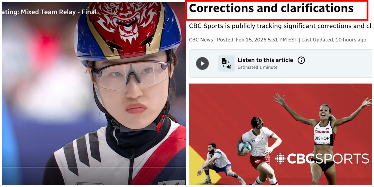 올림픽 생중계중 한국 선수를 계속해 중국 선수로 소개해 논란에 휩싸인 캐나다 공영방송 CBC가 정정 보도문을 냈다.