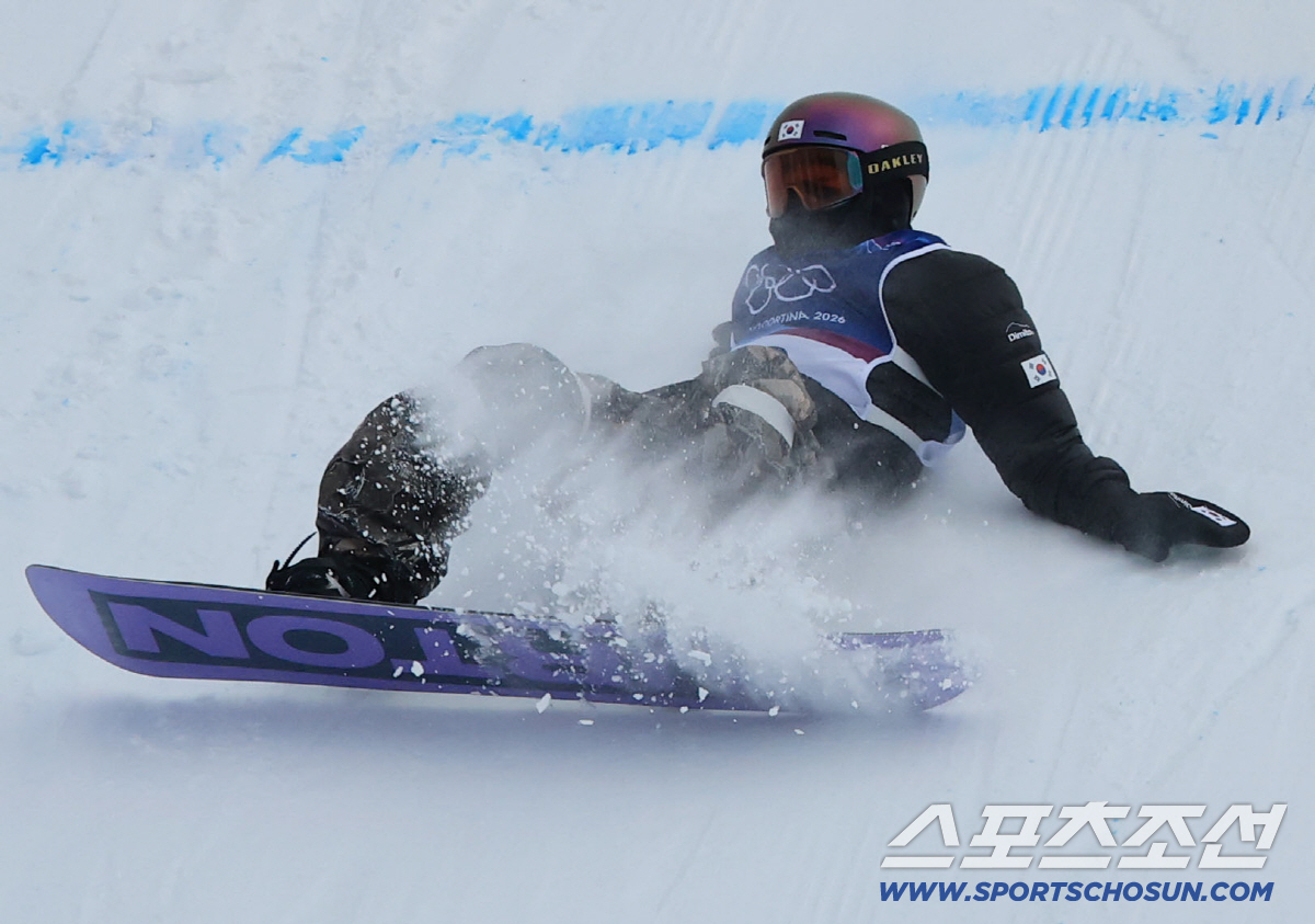 18일 이탈리아 리비뇨 스노보드 여자 슬로프스타일 경기. 슬로프스타일 2차 연기 도중 넘어지고 있는 유승은. 리비뇨(이탈리아)=송정헌 기자songs@sportschosun.com