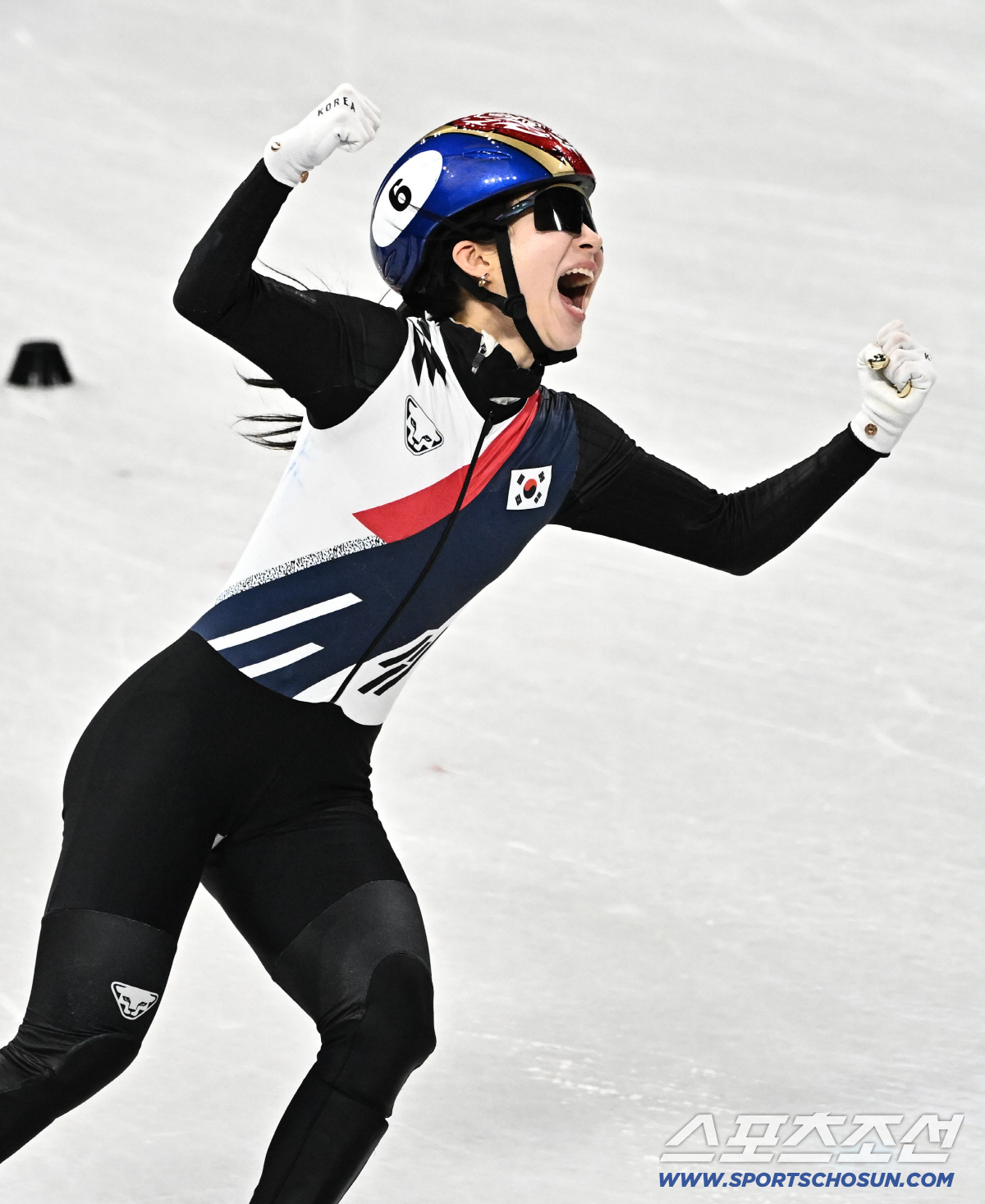 19일(한국시간) 이탈리아 밀라노 스피드스케이팅 아레나에서 열린 밀라노동계올림픽 쇼트트랙 여자 3000m 계주 결승전. 결승선 1위로 통과하며 환호하는 김길리. 밀라노(이탈리아)=송정헌 기자songs@sportschosun.com/2026.02.19/