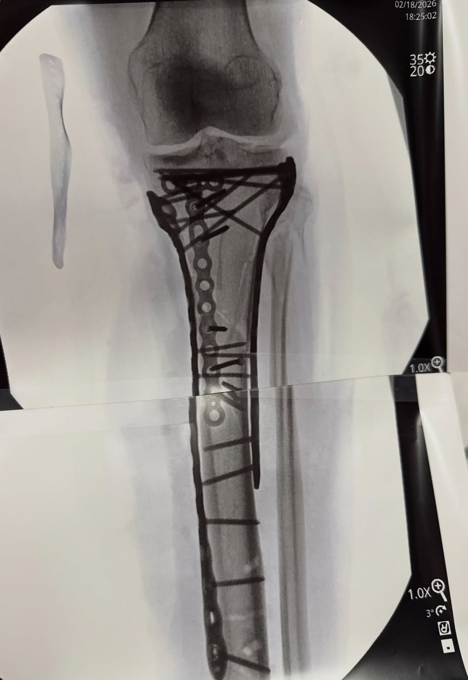 본은 코르티나 지역 병원 중환자실에서 1차 치료를 받은 뒤 트레비소 지역 대형 병원으로 옮겨졌다. 검사 결과, 왼쪽 다리 경골이 복합 골절됐다.